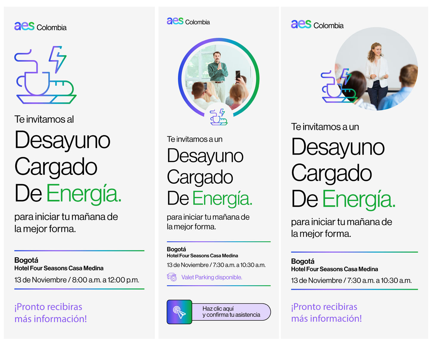 "Desayuno Cargado de Energía" fue un evento realizado en dos momentos y ciudades distintas. La creación de contenido no solo abarcó la producción de cortinillas, sino también el diseño de piezas estáticas.